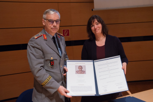 Nach dem Vortrag besiegelten der Kommandeur der Offizierschule des Heeres, Herr Brigadegeneral Martin Hein und Frau Beate Reimer, Stellvertretende Vorsitzende der Erwin-von-Witzleben-Gesellschaft und Urenkelin des Generalfeldmarschalls, mit ihrer Unterschrift über die entsprechende Vereinbarung die Leihgabe der Erwin-von-Witzleben-Büste an die Offizierschule des Heeres.